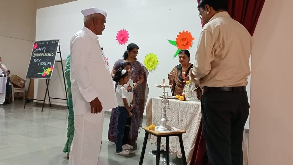 On 8th August, 2024 Vidyapeeth New English Medium School (VPNEMS) celebrated Grandparents day with a heartwarming program that combined tradition, talent and fun. The event, designed to honor the cherished role of grandparents, featured a Saraswati Pooja, student’s speeches, cultural performances & engaging games.